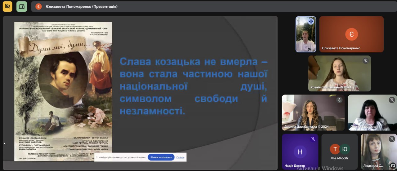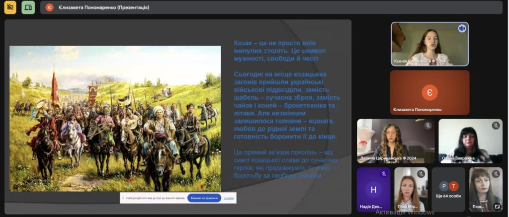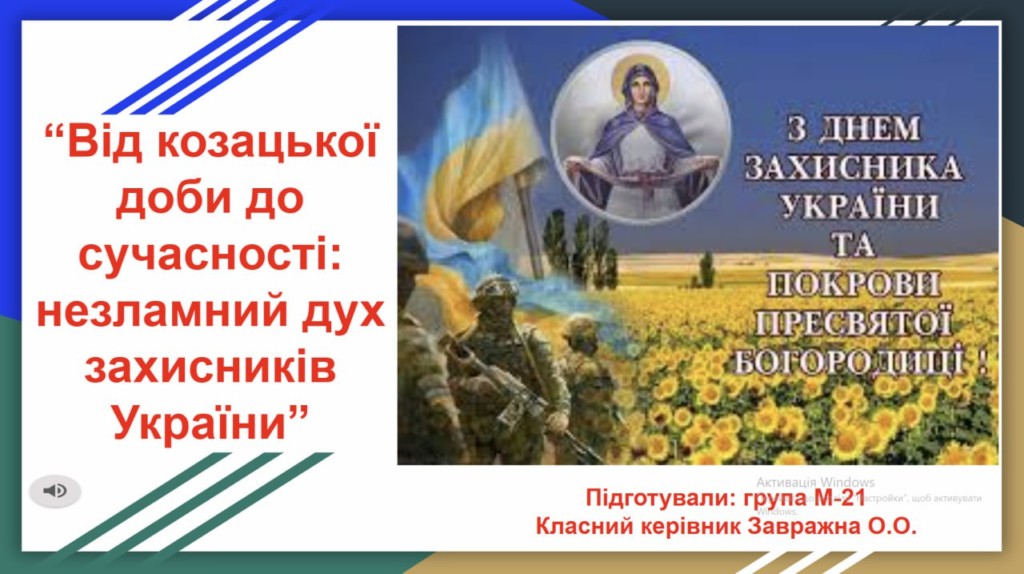 В Ізюмському медичному фаховому коледжі студенти групи М-21 разом з класним керівником Завражною О.О. підготували і провели урочистий онлайн захід «Від козацької доби до сучасності: незламний дух Захисників України», який об’єднав студентів, викладачів та гостей у єдиному пориві вдячності та гордості. Особливе місце займають наші студенти – військові, військові медики та волонтери. Вони щодня доводять, що любов до Батьківщини проявляється не лише у словах, а й у конкретних діях – у мужності, професіоналізмі та самопожертві заради життя і майбутнього України.