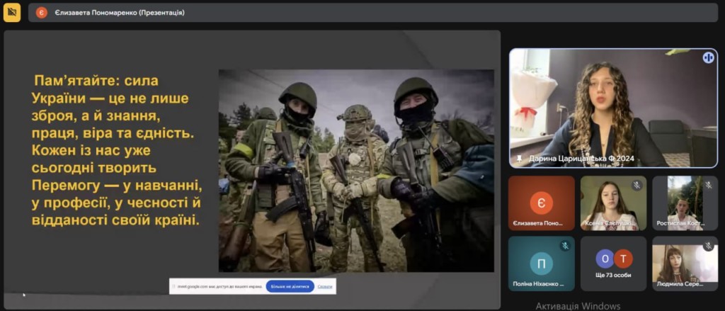 Наш колектив пишається молоддю, яка вміє поєднувати навчання з великою місією служіння Україні. Історія, духовність і патріотизм – це три крила, на яких тримається наша сила й єдність. Саме вони ведуть нас до Перемоги, саме вони дарують віру в те, що всі захисники й захисниці повернуться додому з Миром і Славою.